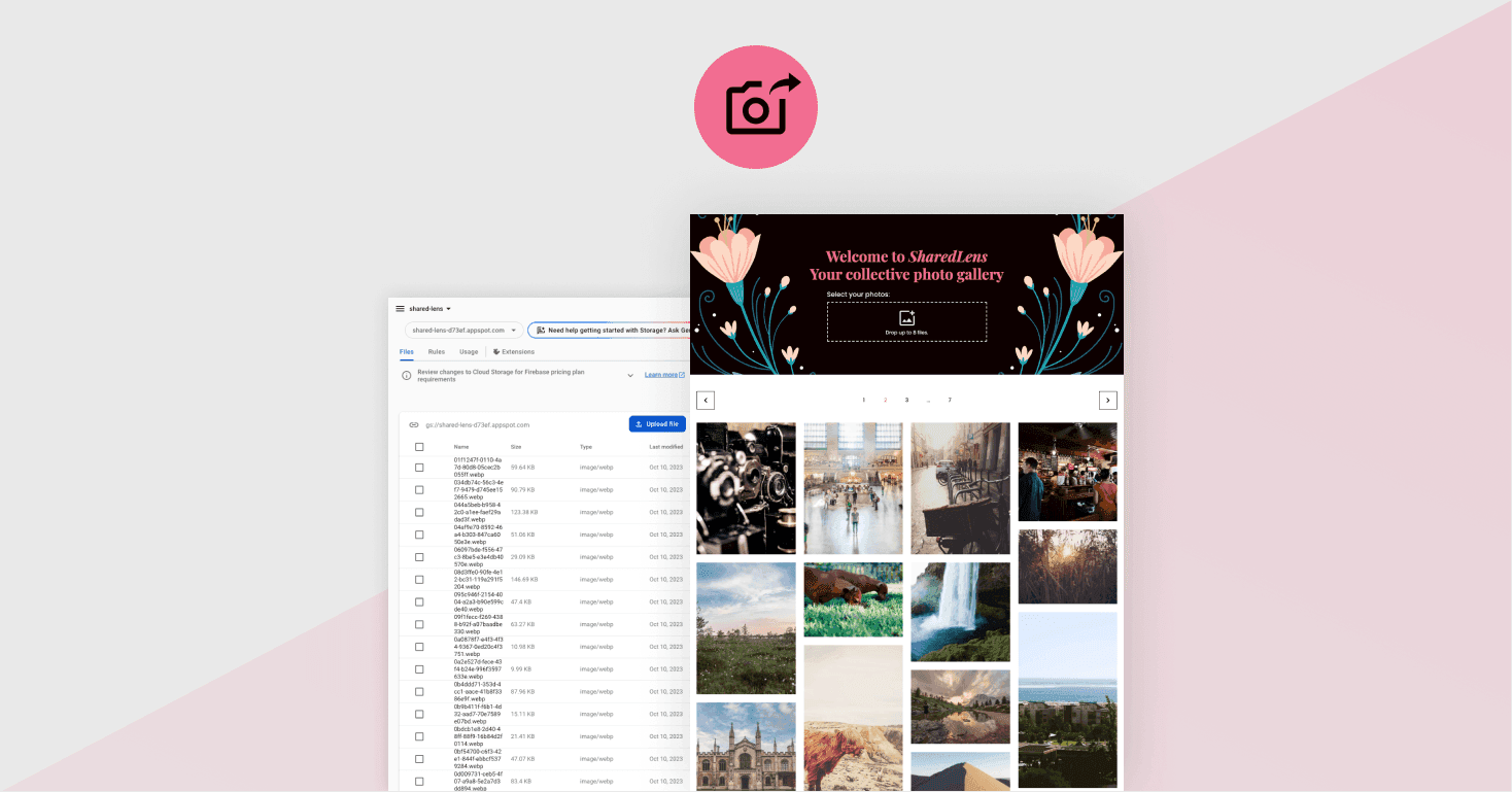 Event photo-sharing platform with seamless uploads, custom captions, and responsive gallery layout.